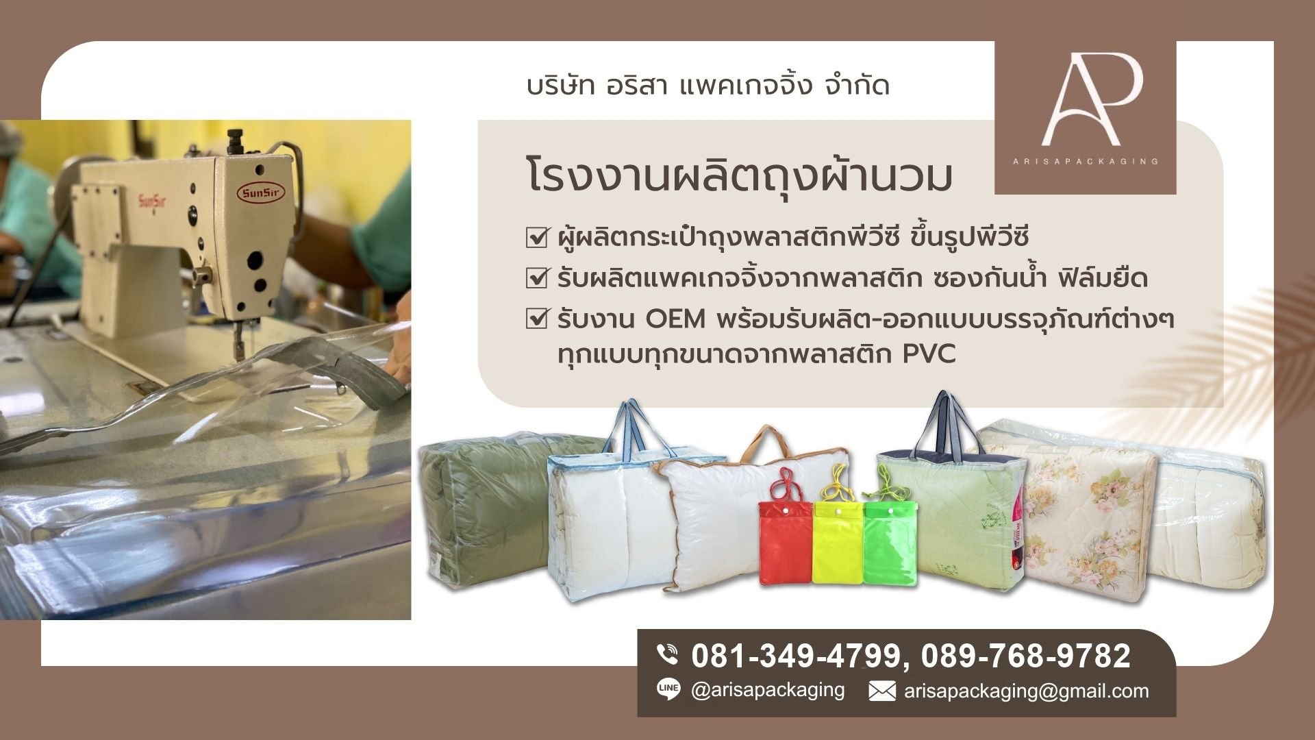 อริสา แพคเกจจิ้ง โรงงานผลิตกระเป๋าpvcใส กระเป๋าใส่ผ้านวม
